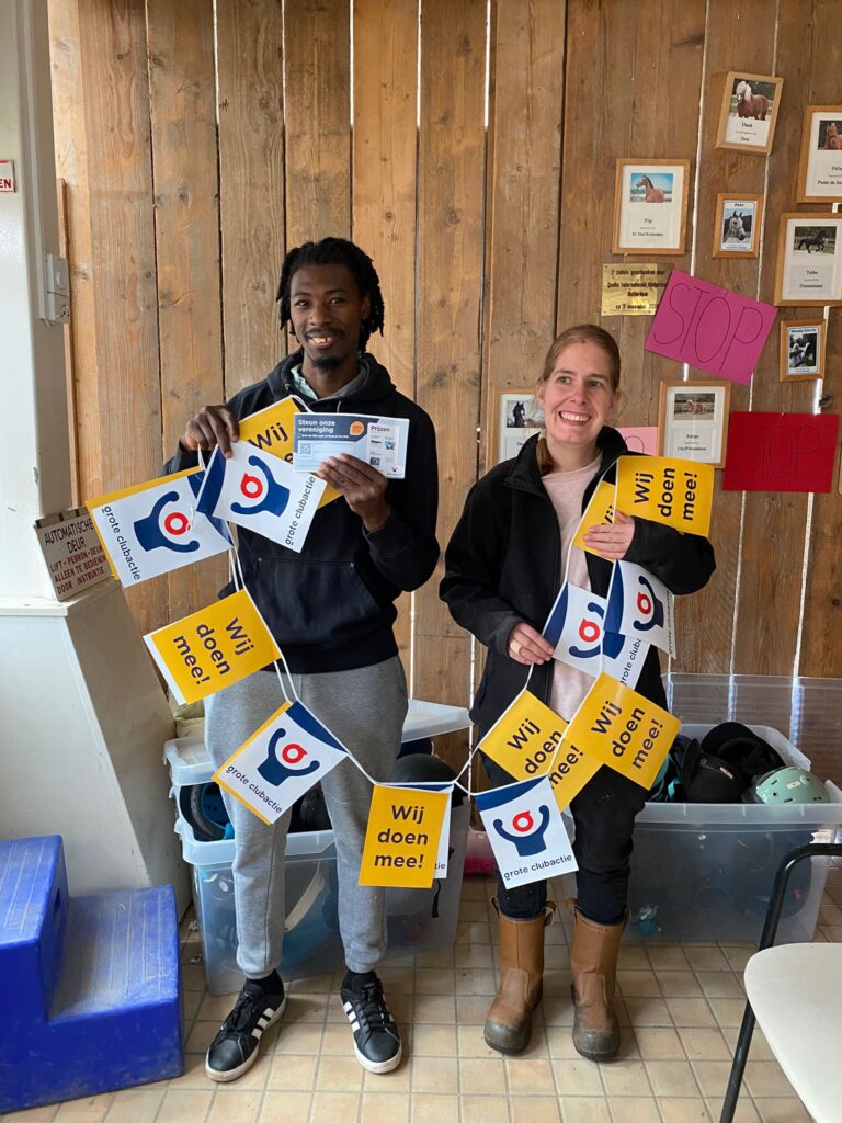 Zaterdag 20 september is de grote clubactie weer gestart. Onze leden en vrijwilligers hopen op een succesvolle verkoop van de Grote Clubactie-loten. Want onze bijzondere manege, waar iedereen met en zonder een beperking kan paardrijden, is niets zonder onze bijzondere paarden en pony’s. En daar is versterking nodig want oudere pony’s gaan minder doen en uiteindelijk zelfs lekker met pensioen!